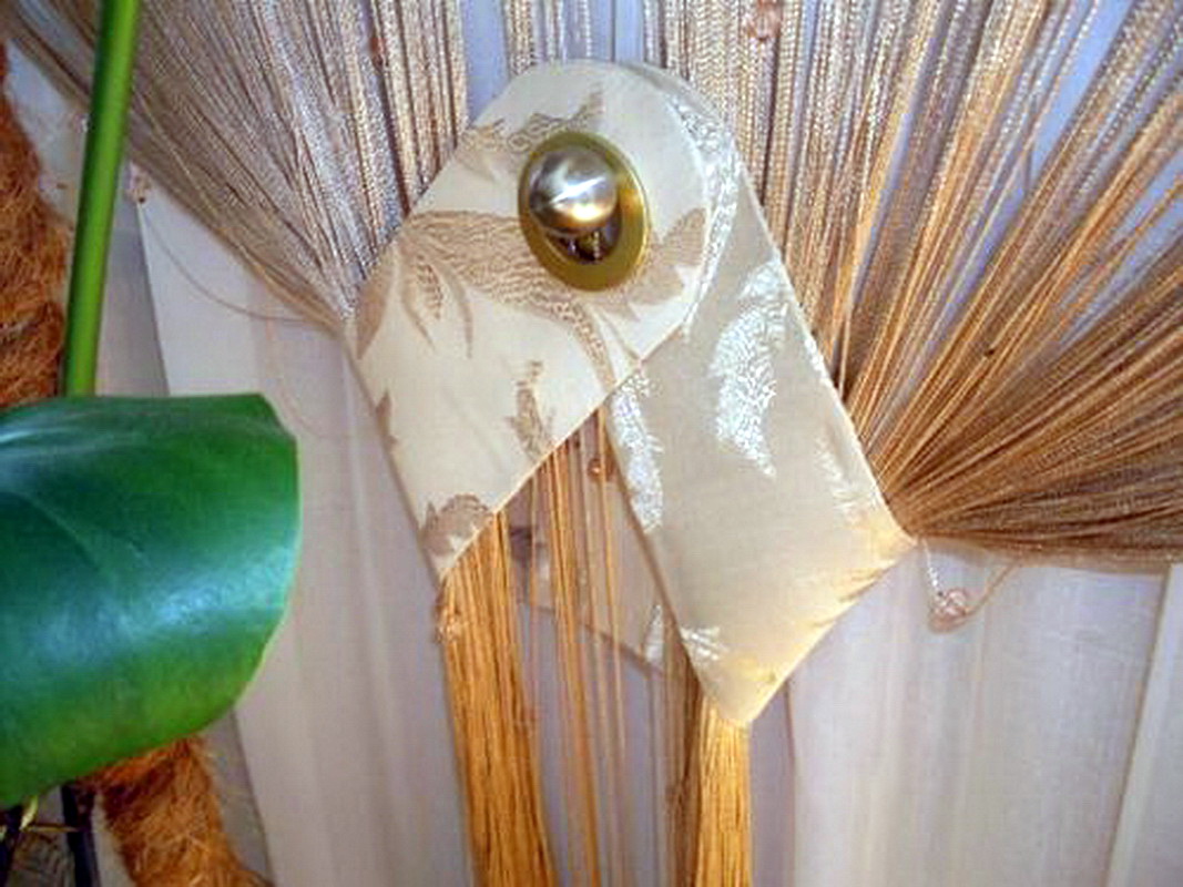 - Parfois, les rideaux sont noués par la formation d’un léger claquement à la jonction. Cette conception n’exclut pas non plus la négligence, mais son inconvénient est qu’il est souvent nécessaire de démêler les fils qui se chevauchent.