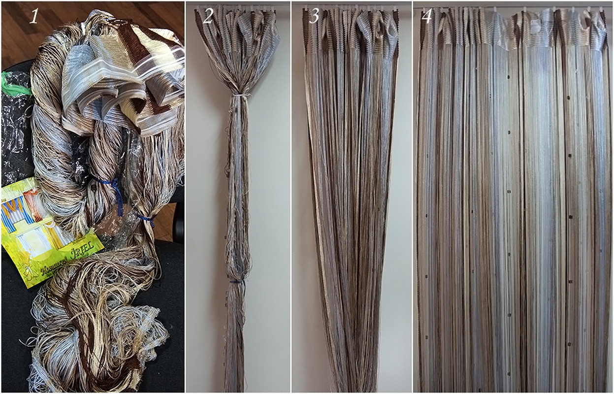 - De fins fils de plastique sont utilisés pour décorer la conception traditionnelle des rideaux de mousseline. Ils sont étroitement liés aux faisceaux principaux et créent un effet de scintillement agréable.