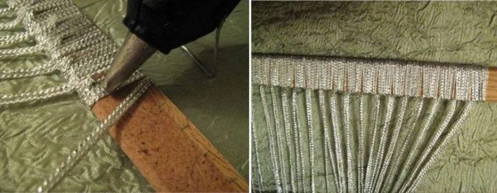 Tout d'abord, vous devez préparer indépendamment les avant-toits pour les rideaux. Utilisez une structure en bois simple. Si vous le souhaitez, il peut être recouvert de peinture ou d'émail.Construisez des montures sur les avant-toits et fournissez-leur des anneaux de fil. Pour créer les rideaux eux-mêmes, pliez les fils de la longueur dont vous avez besoin exactement les uns par rapport aux autres. Il faut en outre laisser quelques centimètres de longueur pour les nœuds. Après cela, vous pouvez attacher les fils à la corniche.