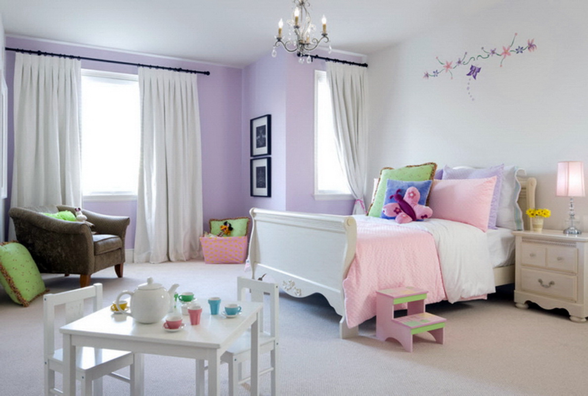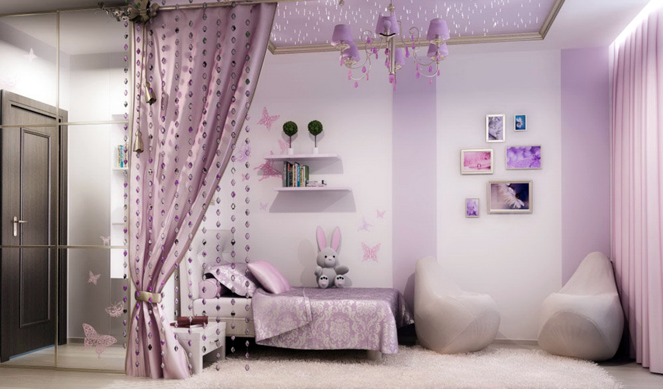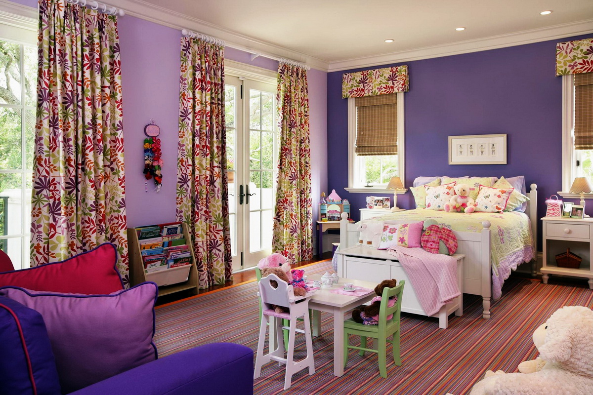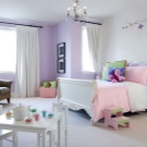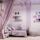 - Les concepteurs ne recommandent pas l'utilisation de couleur lilas dans la chambre des enfants en trop grande quantité, puisque l'abondance de cette couleur affecte le psychisme de l'enfant n'est pas la meilleure solution. Les enfants deviennent irritables, dorment mal. Mais si, dans la chambre des plus petites familles, les murs sont décorés de la sorte, les rideaux doivent choisir des teintes douces: vert clair, paradisiaque. La présence d'une image est autorisée, il peut s'agir d'une bande verticale ou d'images de personnages de dessins animés préférés.