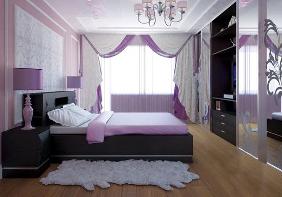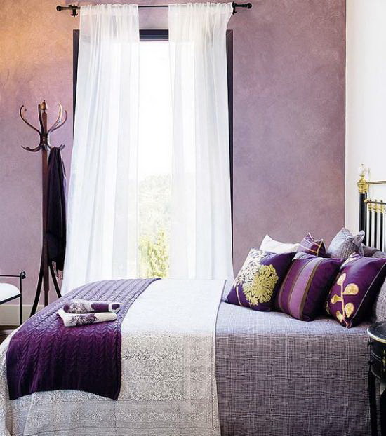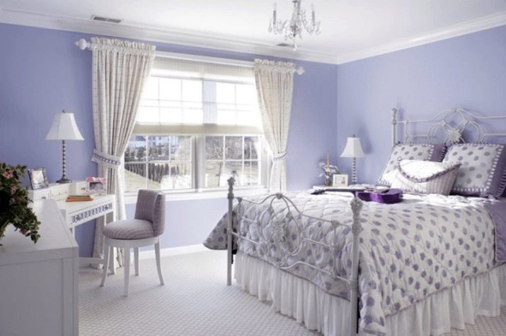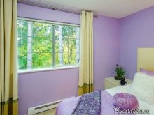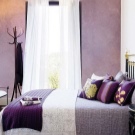 - Dans la salle de repos la couleur des murs remplit l’une des fonctions les plus importantes; c’est la zone personnelle de la personne; elle doit donc être aussi confortable et confortable que possible afin de pouvoir y vivre et y dormir facilement. Pour une chambre aux couleurs lavande ou violet clair, par exemple, des rideaux blancs conviendraient. La couleur neutre diluera le ton de base des murs, ainsi la situation dans la pièce deviendra calme et harmonieuse. Le blanc en combinaison avec le lilas est un duo d'élite de deux couleurs. Aussi à l'espace lilas sont les rideaux de pêche idéales, olive, rose clair, vert clair, surtout si la pièce est sombre.