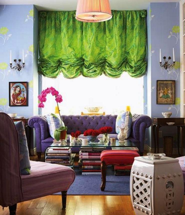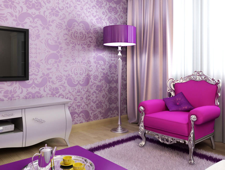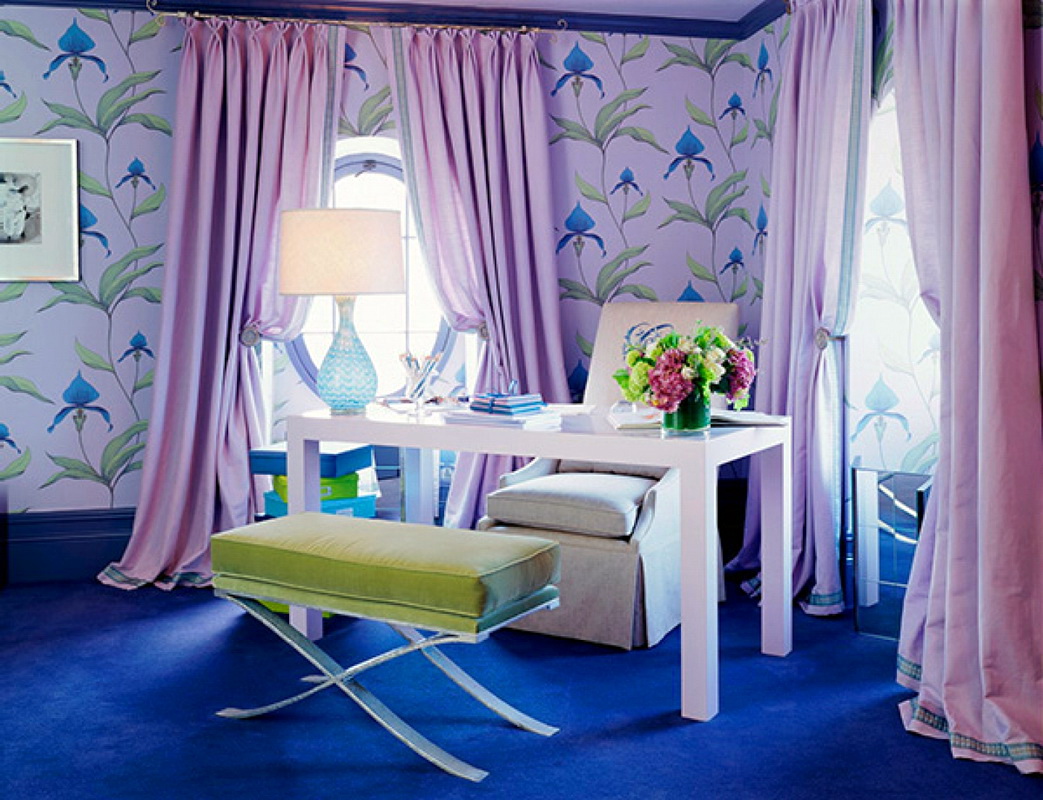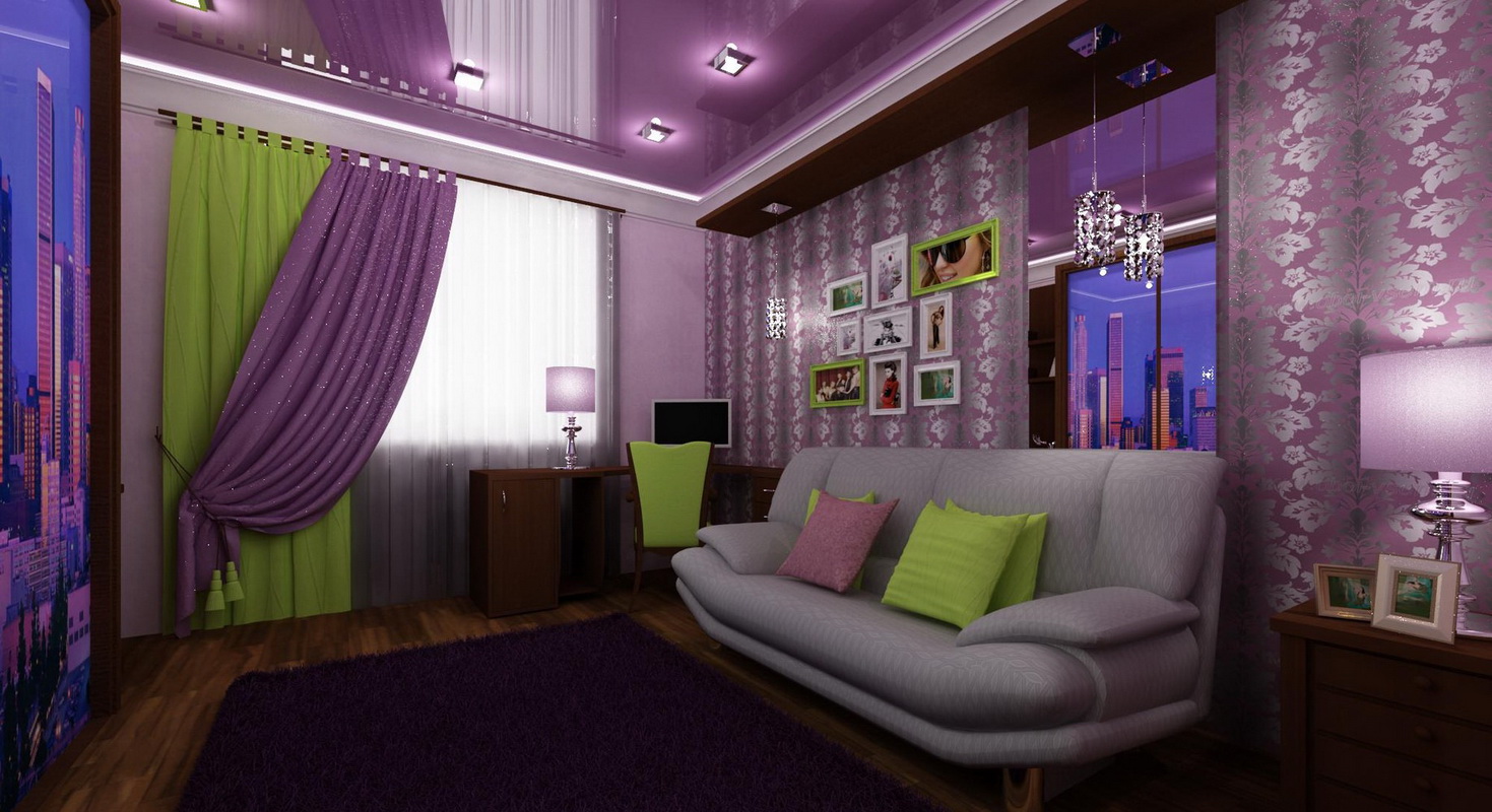 La combinaison de murs violets avec des rideaux de couleur céladon a toujours été considérée comme un signe de style et d’excellent goût, quelle que soit la pièce dans laquelle une telle combinaison est présentée.