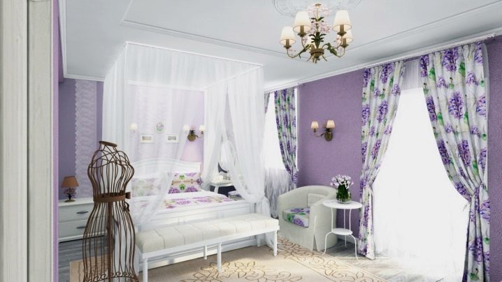 Le choix des rideaux dans une pièce avec un fond de lavande nécessite une approche subtile et compétente: