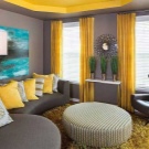 Si une famille nombreuse habite dans l'appartement, le salon est le lieu de résidence du ménage.La palette de couleurs ici devrait contribuer à la bonne humeur. Cela aidera à obtenir la couleur dorée, jaune-vert, gris-bleu, gris-vert. Si la famille est petite, le salon n'est utilisé que le soir. Pour la décoration des fenêtres, ils utilisent des couleurs saturées: violet, bleu, violet, ce qui sera un bon fond pour les meubles clairs.