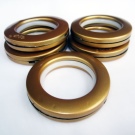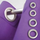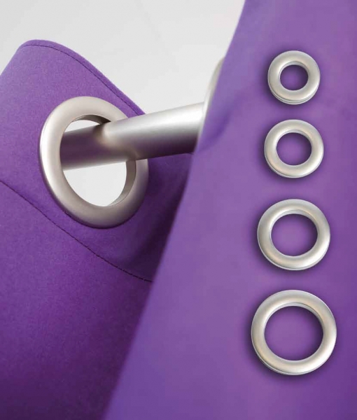 - oeillets - des bagues composées de deux parties encadrant les trous de la toile. Ficelé à l'avant-toit avec un profil rond. En raison de l'emplacement à la même distance, des plis uniformes sont créés, de sorte que les rideaux combinés sur les œillets ont un aspect très impressionnant.