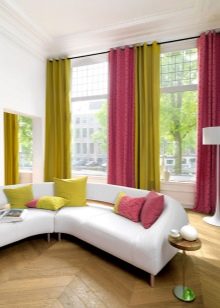 - si vous voulez souligner la fenêtre - les rideaux choisissent des couleurs vives saturées qui doivent reproduire les couleurs dominantes de l'intérieur;