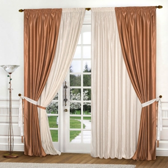 En plus de la fonction de protection, le tissu de doublure ajoute du volume aux textiles de rideaux, de tels doubles rideaux reposent plus expressivement et la formation de plis et de draperies est facilitée. La conception du salon implique la combinaison de différents types de rideaux.