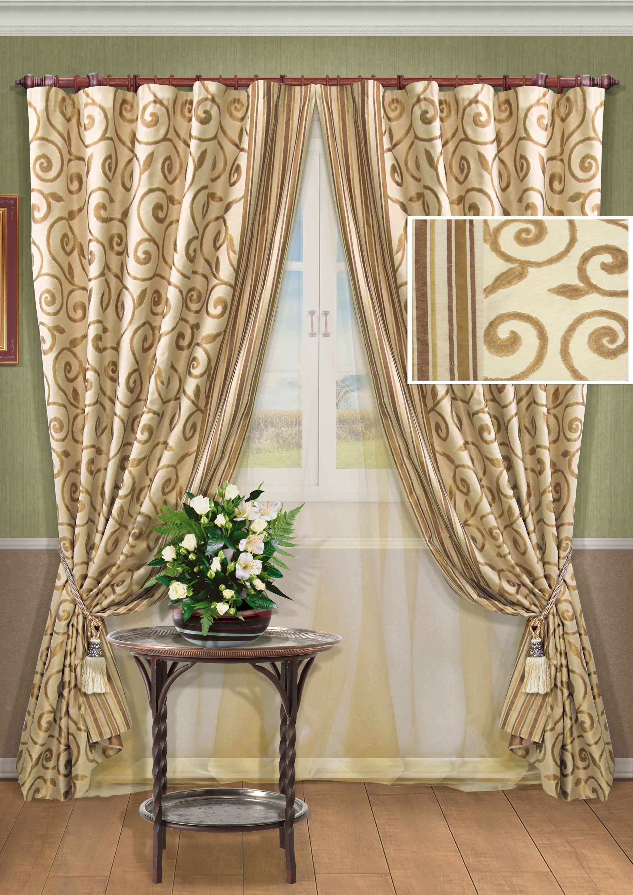 - Un motif imprimé, une tapisserie ou un jacquard auront fière allure. C'est bien si les rideaux sont garnis de tresses ou de franges. Portières du siècle dernier, doubles, multicouches, peuvent changer l'intérieur du salon.