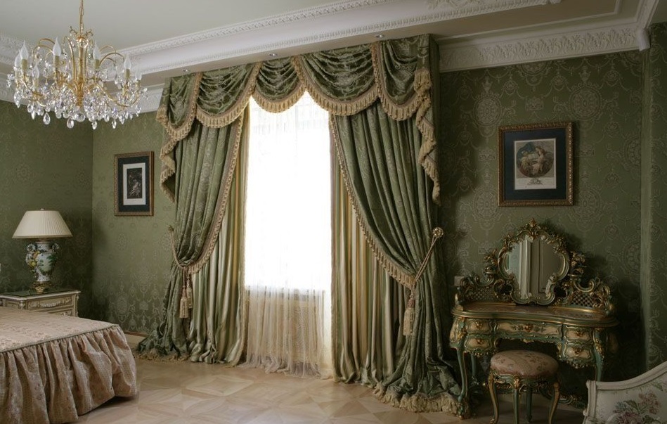 - superposition de modèles, différents fantasmes, rideaux à plusieurs rangées, fortement drapés, éventuellement avec un lambrequin;