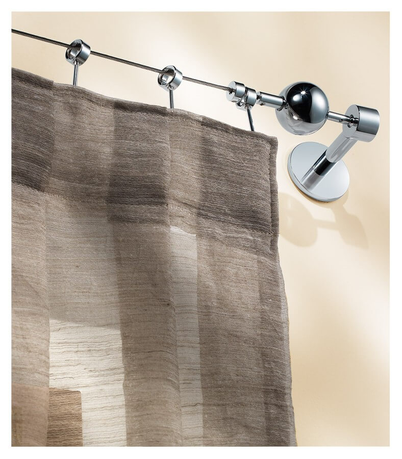 - barbell - la version classique de la corniche en métal, bois, plastique. Se fixe au mur avec un support, cela se passe avec plusieurs guides, les rideaux y sont fixés à l'aide d'anneaux;