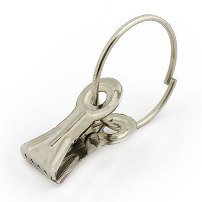 - pinces - Il existe plusieurs options: crocodiles, pinces ou crabes. Utilisé comme attache autonome, avec crochets ou anneaux.Avec l'aide du serrage, il est possible d'ajuster la longueur du rideau ou de créer des plis;