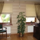 - Harnais, paille, bambou. Ce sont des matériaux naturels. Une excellente option pour la cuisine. En plus de la protection de l'environnement, ces rideaux apporteront de la texture à votre fenêtre. Une industrie moderne offre la couleur des rolets de bambou dans toutes les nuances, y compris les couleurs riches, qui seront utiles pour leur introduction la plus précise à l'intérieur de la pièce. L'inconvénient de ce matériau est que de tels stores bruissent dans le vent.