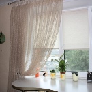 - Len. Un autre matériau naturel, donc également respectueux de l'environnement. Les rideaux en ont l'air simples, mais en même temps élégants. Son inconvénient est la possibilité de rétrécir lors du lavage. Le coût de telles rolettes sera assez élevé.