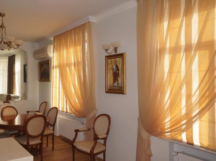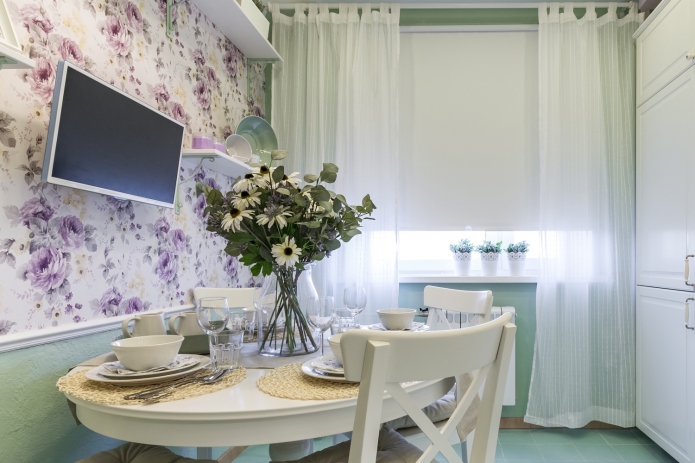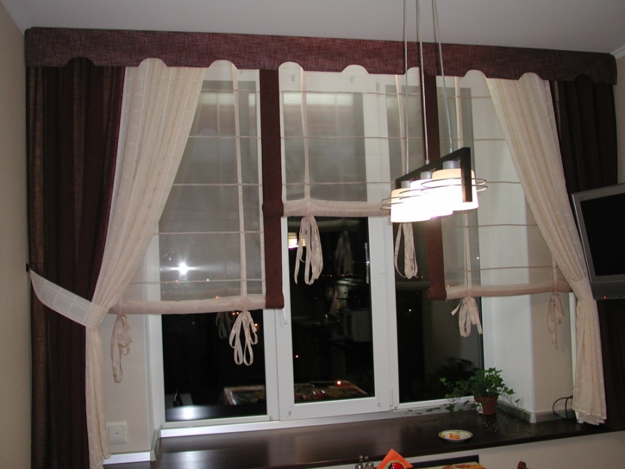 Il est bon que, dans la chambre à coucher, le couvre-lit et les rideaux aient un ornement similaire et que dans la cuisine, les rideaux soient assortis à la couleur du set de cuisine. En outre, les rideaux peuvent être à l'ombre des murs de la pièce.