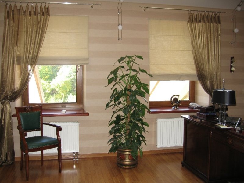 En outre, cette solution de conception est souvent complétée par lambrequin, qui sera combiné avec des stores à enrouleur.