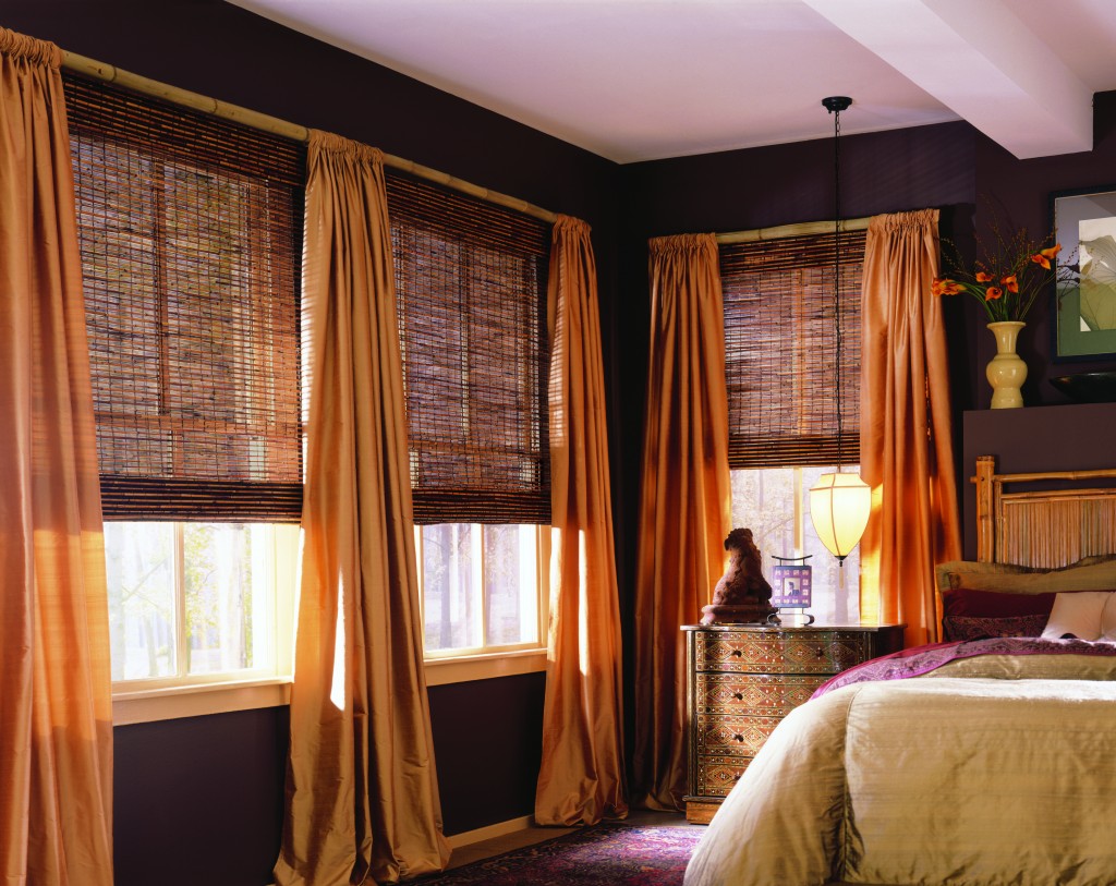 - Cette combinaison sera appropriée dans les directions stylistiques modernes. Par exemple, pour la conception ethnique de la chambre à coucher, des stores en bambou encadrés par un rideau de tulle sont parfaits. Dans la salle high-tech, les stores à rouleau blancs peuvent être complétés par un organza gris à reflets métalliques.Même au minimalisme, vous pouvez choisir cette combinaison. Par exemple, roleta et tulle unicolores de la même nuance avec un minimum de drapage.