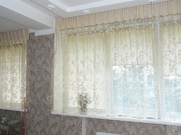 - Voile - C'est un tissu plus dense qui diffuse la lumière du soleil. Dans le même temps, il est beaucoup plus doux que l’échantillon précédent. Le voile n'a qu'une surface mate. Il peut être fait de soie, de coton, mélangé ou entièrement synthétique. Le voile est monophonique, avec des inserts en guipure, avec des motifs différents ou en plaqué or.