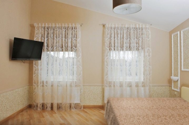 - Tulle remplit toute l'ouverture de la fenêtre. En même temps, ce rideau peut être long ou recadré, par exemple sous la forme d’une arche ou d’une vague.