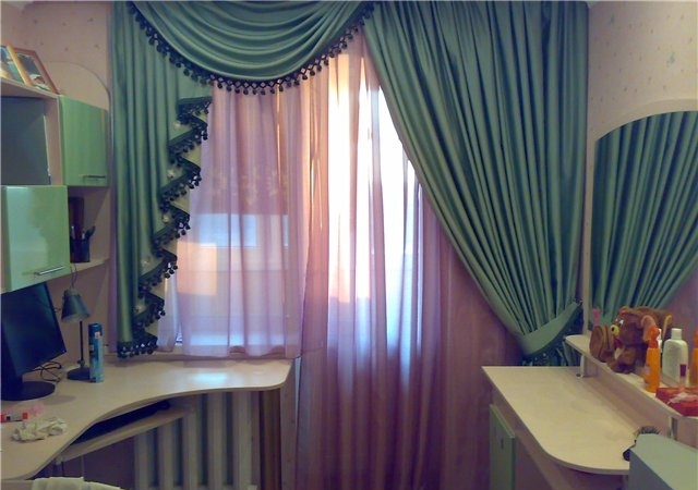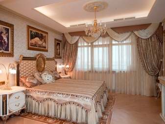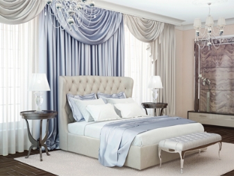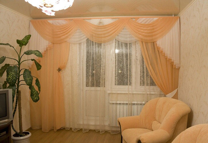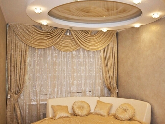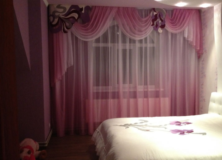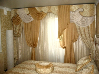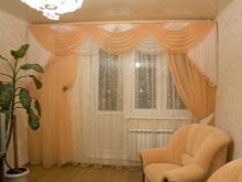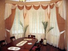 Veuillez noter que un long lambrequin couvrira une assez grande partie de la lumière du soleil, Par conséquent, cette option est préférable de choisir pour la chambre à coucher, où le crépuscule naturel contribuera au repos et à la détente. Ceux qui ne peuvent pas imaginer leur vie sans soleil et sans espace préfèrent les options courtes.