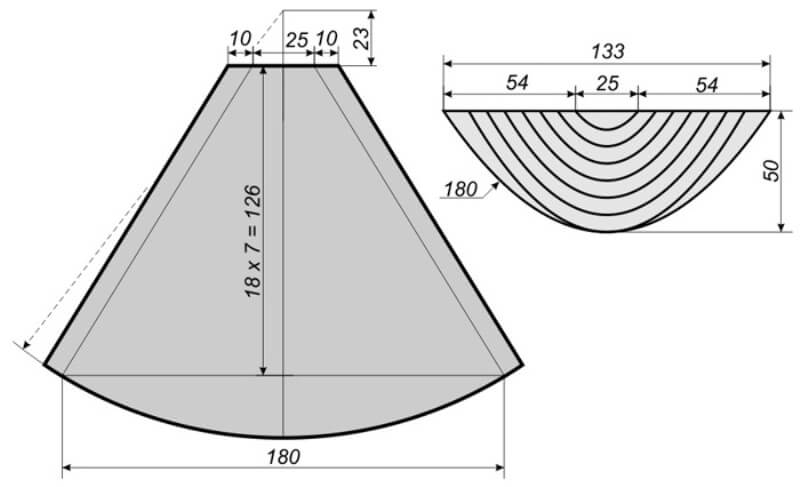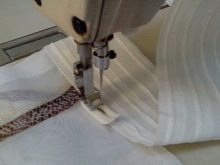 Le swag standard doit être coupé à un angle de 45 degrés. Une telle condition doit être respectée pour que cet accessoire devienne une forme semi-circulaire. Avant de le coudre, le capitaine assemble un butin sur un support spécial, en posant soigneusement chaque pli, formant ainsi une belle peau.