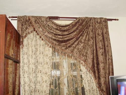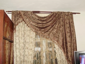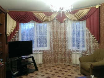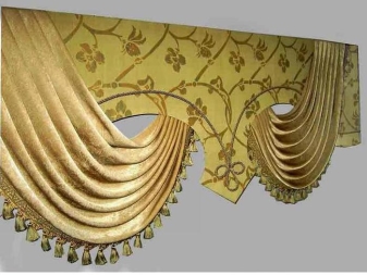 - Passage dans de Jabot (le deuxième nom est une coupe simple) - la partie d'un lambrequin, sous la forme rappelant un demi-cercle, se pose par des plis lisses. La coupe en une pièce va dans le côté du de Jabot.