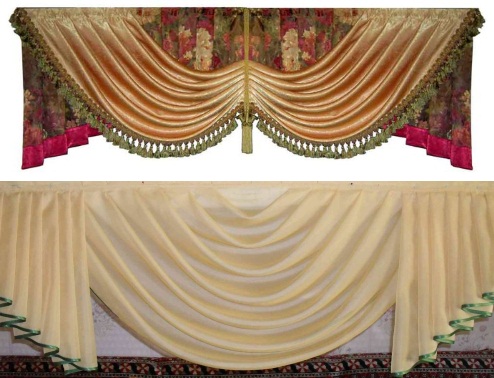 Dans un même lambrequin, il est possible d’utiliser plusieurs swags en même temps, situés comme s’ils se chevauchent. Si de tels attributs sont placés côte à côte de manière à ne pas se chevaucher, un élément décoratif supplémentaire doit être cousu entre eux, ce qui remplira l'espace formé. Une telle pièce supplémentaire peut être un lien ou un moule en métal.
