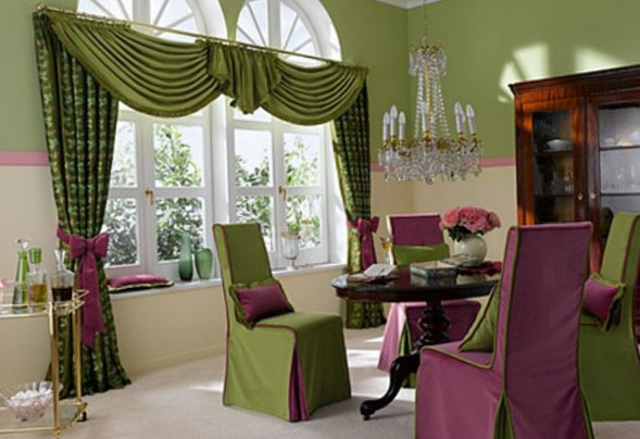 Il est très important que les swagas ne se confondent pas avec les murs. Choisissez donc quelques nuances plus claires ou plus foncées que la décoration murale.Notez que des rideaux trop sombres peuvent sembler encombrants.