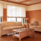 Si votre ensemble de meubles se trouve à une distance maximale de 2 mètres de la fenêtre, vous pouvez sélectionner les rideaux pour leur couleur. S'il n'y a pas de couleur primaire dans la pièce, il est préférable de choisir les couleurs des rideaux pour l'objet ayant la plus grande taille.