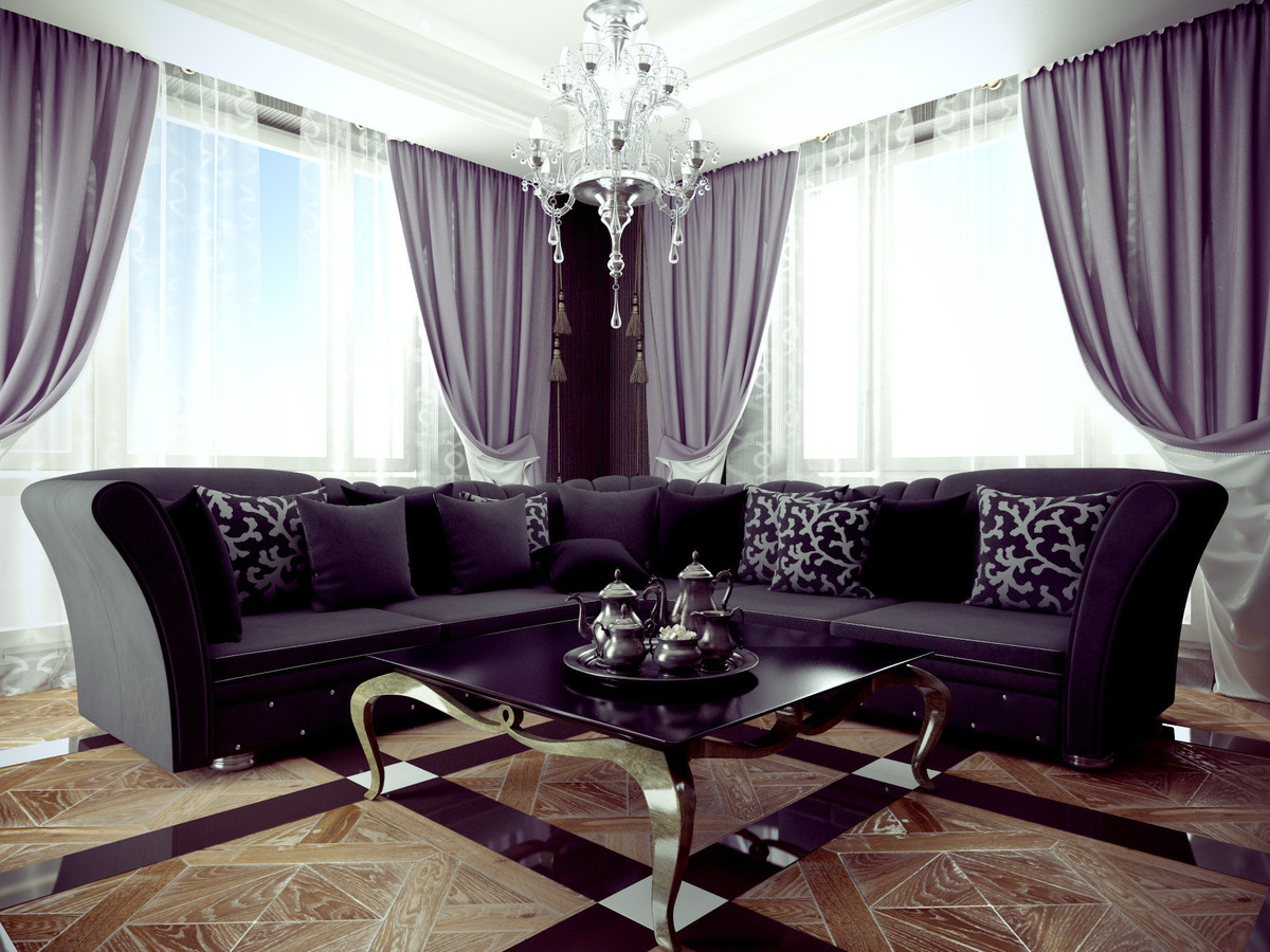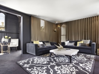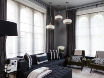 Vous pouvez utiliser une couleur, un tissu, un motif, un motif, non seulement pour les rideaux, mais également pour les oreillers sur le canapé ou d’autres textiles. Des rideaux noirs dans la décoration - ce n'est pas aussi effrayant qu'il y paraît parfois.Avec la bonne combinaison de produits noirs l'air assez élégant.