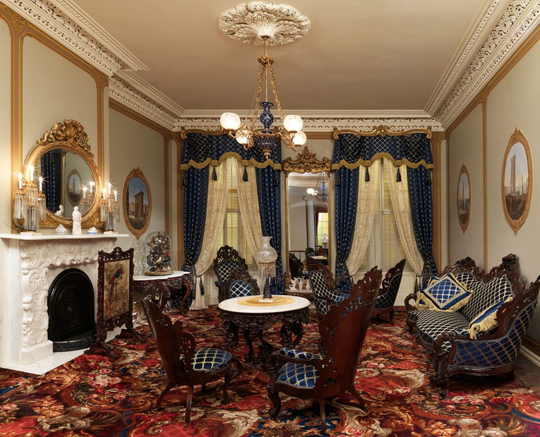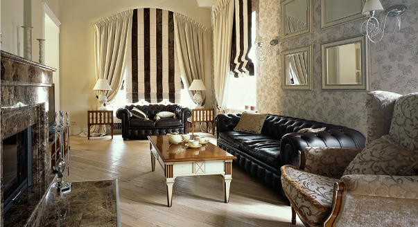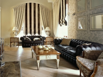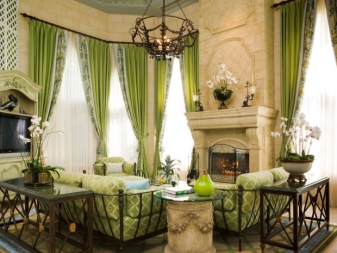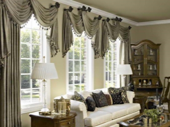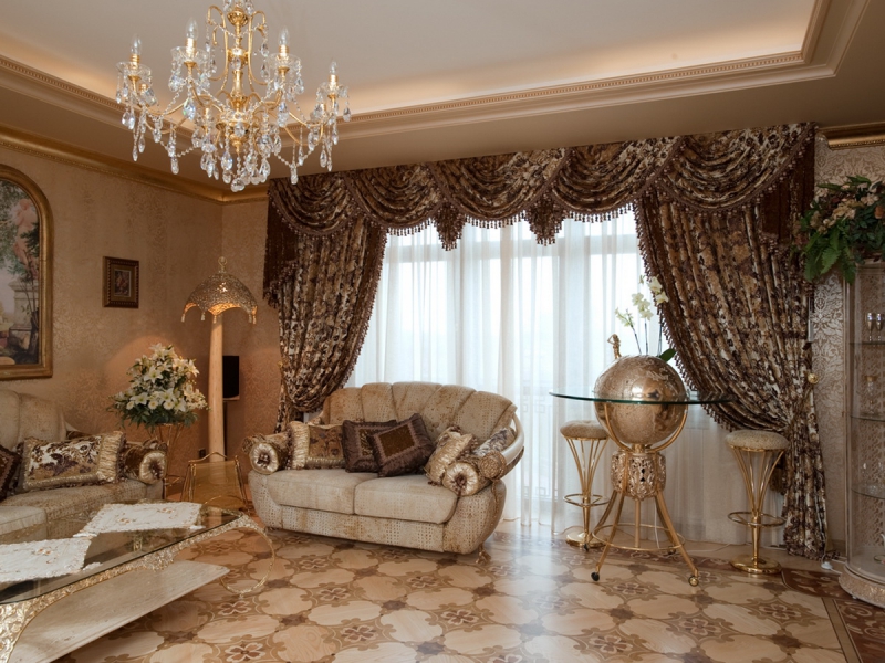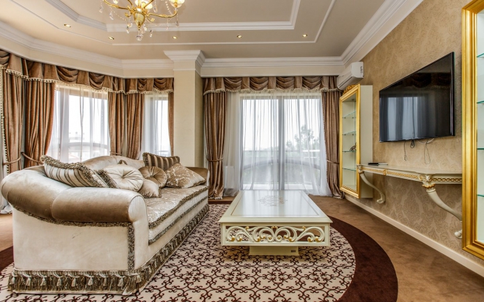 Les grands salons sont mieux décorés avec des rideaux en tissus très denses, qui ont également des peaux lourdes et massives, des volants et des glands courts.