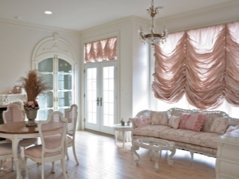 - Style romain. Le matériau est principalement sélectionné dans des tons dorés. Les rideaux sont également généralement décorés avec une frange riche et de grands cordons tressés.