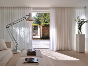 - Minimalisme. Ici, la texture des produits pour fenêtres ne doit pas être accrocheuse et le matériau choisi est aussi aéré que possible. Les brocarts et velours sont complètement exclus. L'aspect couleur est dominé par des nuances douces et chaudes, dominées par le blanc.