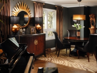 - Art déco. Pour ces rideaux sont choisis des matériaux "nobles". Le dessin joue ici un rôle important. Il doit reproduire sur les rideaux les motifs avec d'autres objets à l'intérieur.