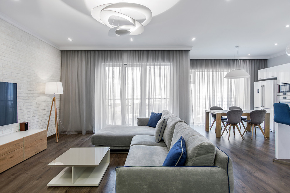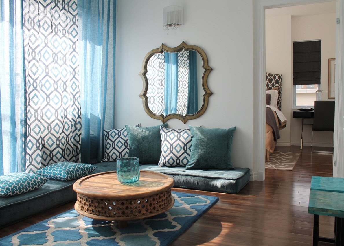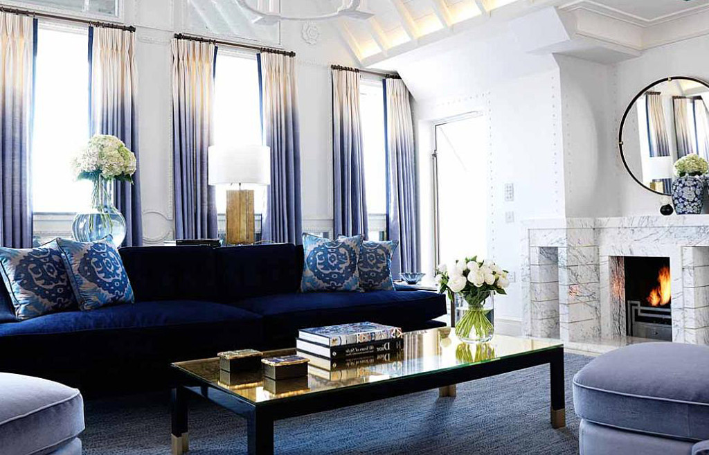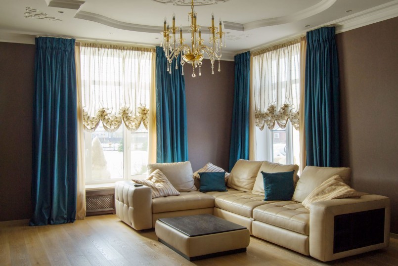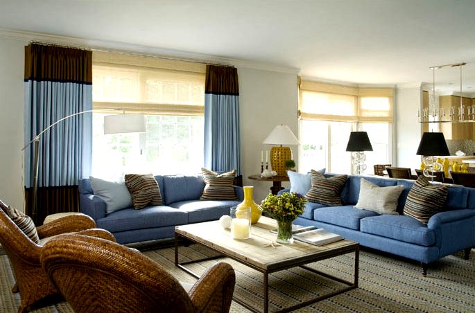 La couleur bleue des rideaux peut apporter de la fraîcheur et une touche de fraîcheur indispensable à l'intérieur du salon.