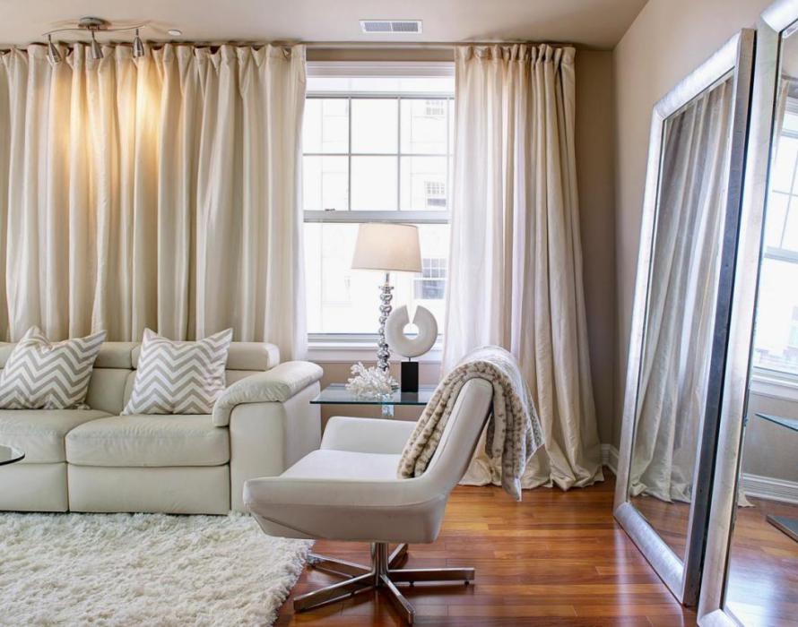 Pour un salon surdimensionné, où il y a beaucoup de lumière du soleil, vous pouvez acheter des rideaux sombres,rideaux qui protègent l'espace de la surchauffe. Vous devez vous rappeler tous les facteurs ci-dessus lors de la sélection des rideaux pour faire le bon choix.