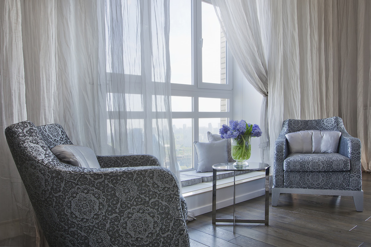 La texture et les couleurs des rideaux sont sélectionnées en tenant compte du style de la pièce: