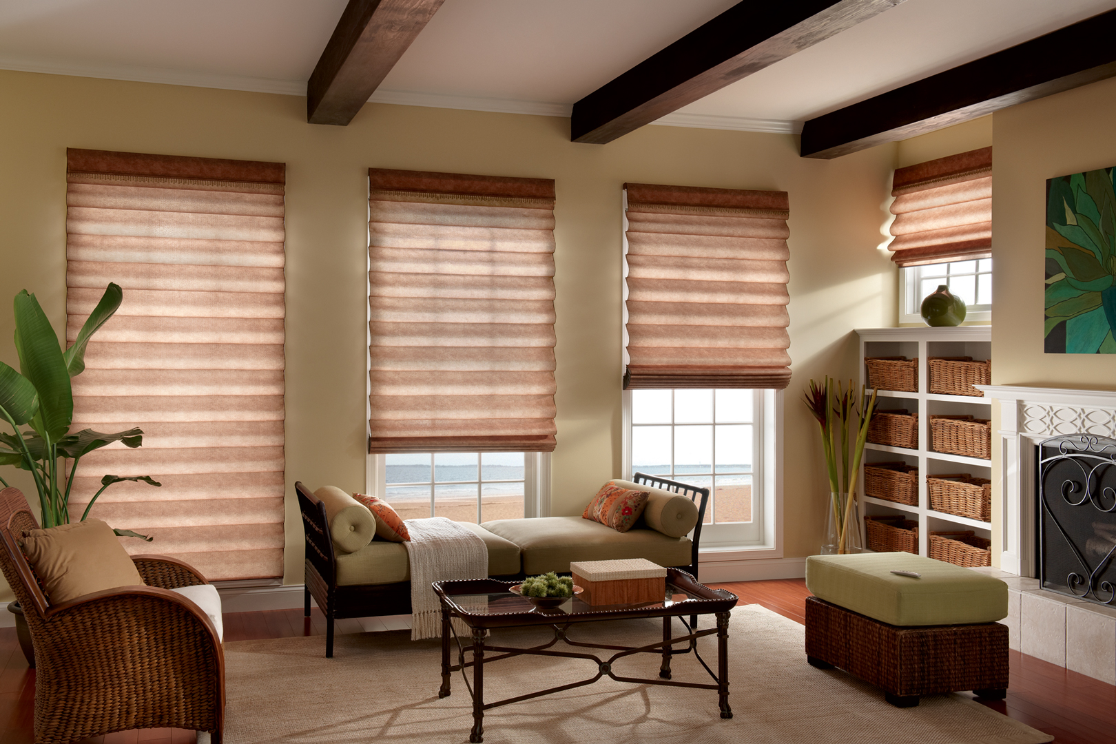 - Romain Les rideaux ont des fixations et un certain nombre de tringles nécessaires pour monter et descendre les rideaux. Il suffit de tirer sur la corde pour que le tissu léger commence à se rassembler de manière originale et se fixe à la hauteur souhaitée, formant ainsi de beaux plis.