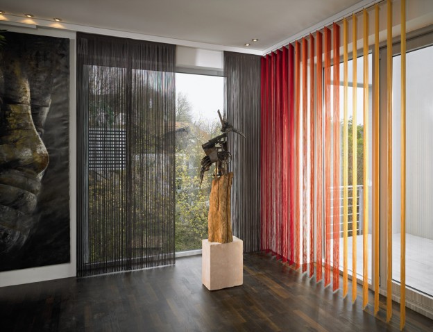 - Coton Les rideaux sont choisis le plus souvent pour séparer les espaces de vie. Vous pouvez choisir des paillettes avec des paillettes ou des perles d’argent, des fils avec une longue frange ou des produits d’une seule couleur neutre.