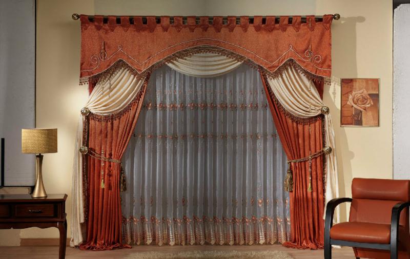 - Classicisme. Les produits pour fenêtres sont en jacquard ou en taffetas, en brocart ou en soie épaisse opaque. Elles sont décorées avec des lambrequins élégants, ainsi que des glands et des dentelles.