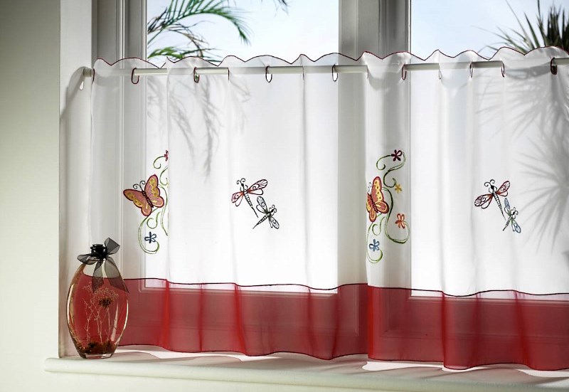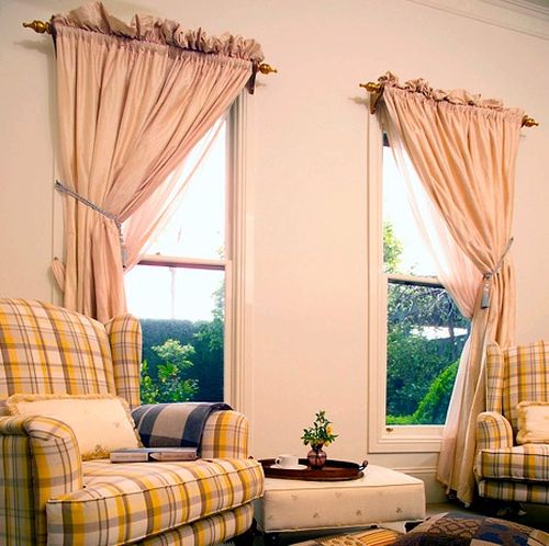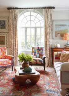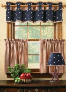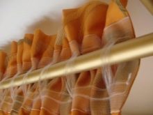Le plus souvent, les rideaux sur les ailes sont suspendus dans des intérieurs rustiques. En outre, cette méthode de fixation est utilisée pour la fixation des rideaux "café", comme sur la photo.