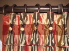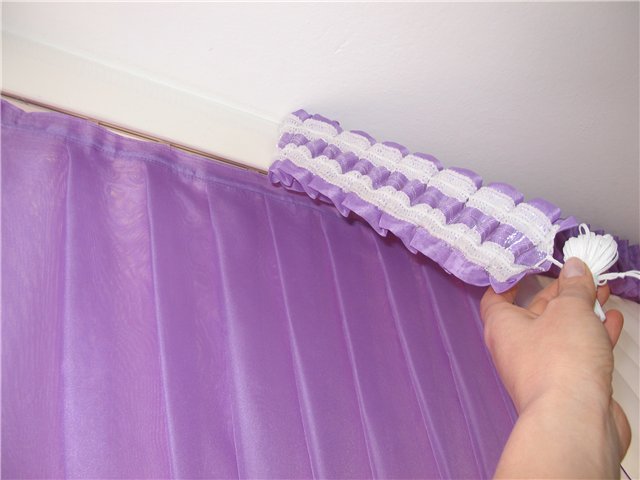 Les points de suture conviennent à tous les intérieurs. Le raid de romance et de jeu est absent ici. Comme les cordons de serrage, les boucles sont généralement faites du même matériau que les rideaux, mais il est parfois préférable de choisir un tissu différent. Habituellement, cette règle est applicable aux enfants.