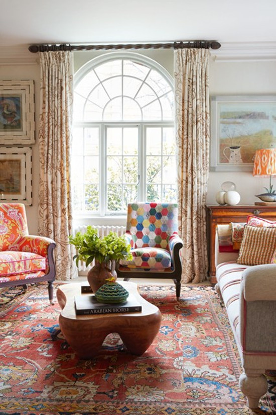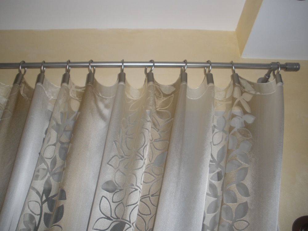 Le plus souvent, les bagues sont utilisées dans une salle de style Techno, mais vous pouvez également les trouver dans un intérieur classique (exemple sur la photo). Les anneaux, cousus aux rideaux, exigent certainement la capacité de les enlever complètement. Mieux encore, ils ont l'air sur une corniche tubulaire.