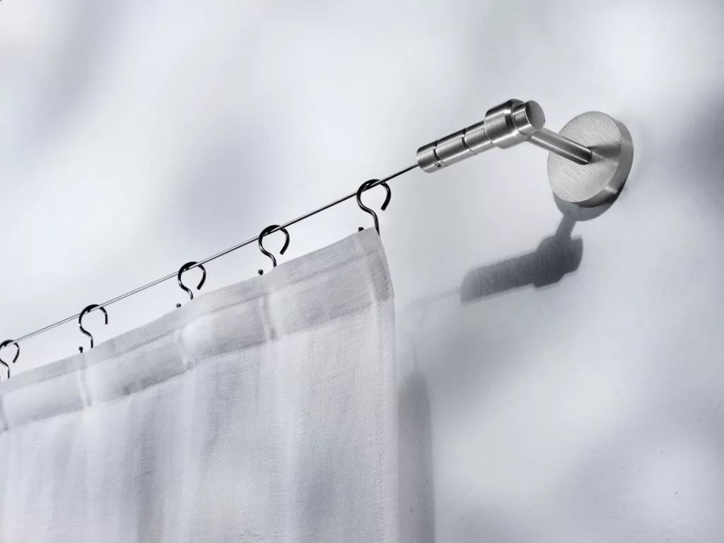 - Cordes. Le «plus jeune» des types de corniches, il s’agit d’un câble métallique sur lequel est monté le rideau. Fait de métal.