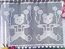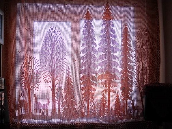 - Pour une chambre d'enfant rideaux appropriés avec un motif en forme d'animaux fabuleux. Ces rideaux ont fière allure sur la vitre.Etant donné qu'ils sont généralement réalisés dans la technique du tricotage en surlonge et que les figures animales sont denses et non lacées, de tels rideaux peuvent être utilisés sans nuit.