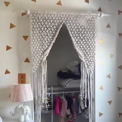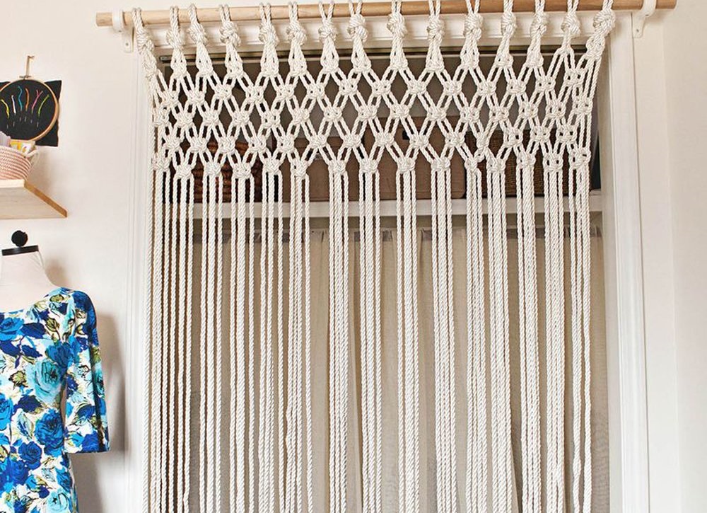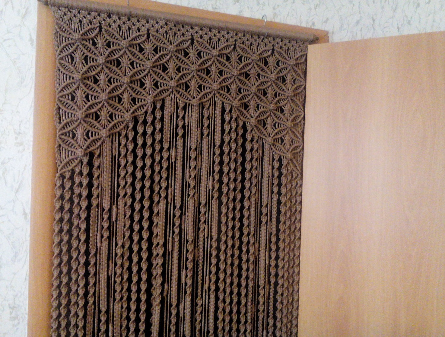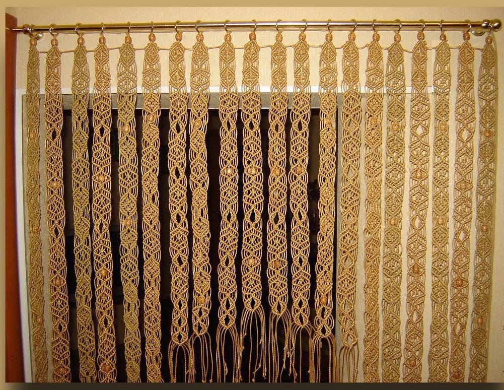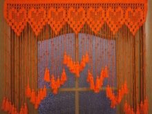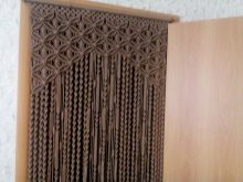 Les rideaux de macramé sont très lourds et épais car des fils robustes et résistants sont utilisés pour le tissage du produit. Cependant, ils ont un grand avantage: ils pendent de manière égale sous leur poids, le motif ne se perd jamais et s'ils se touchent accidentellement, ils reprennent rapidement leur position initiale. Mais, en règle générale, le tissage de macramé sur les fenêtres convient aux pièces du style Country, Safari, et ne se pose que sur la partie supérieure de la fenêtre (au centre) en guise de décoration.