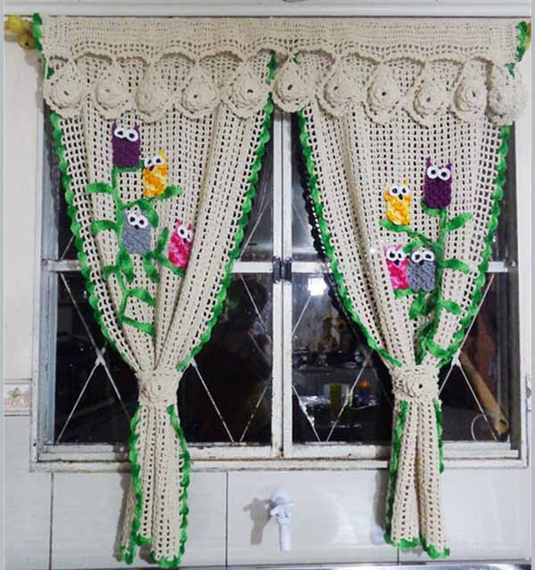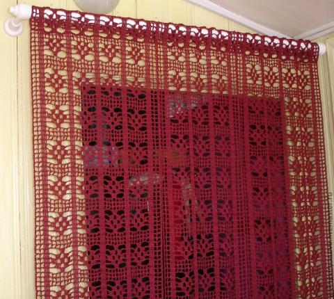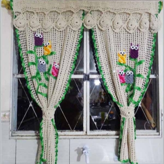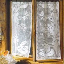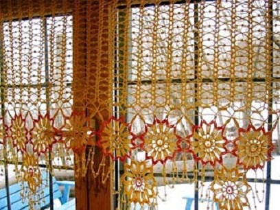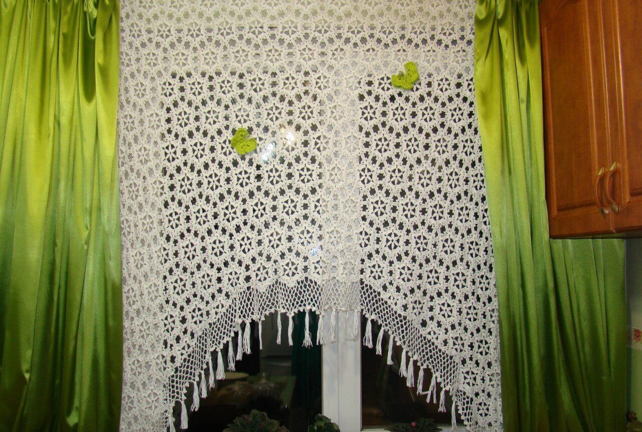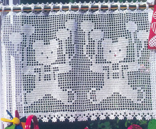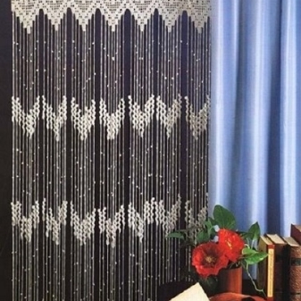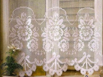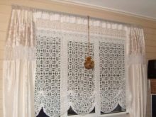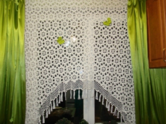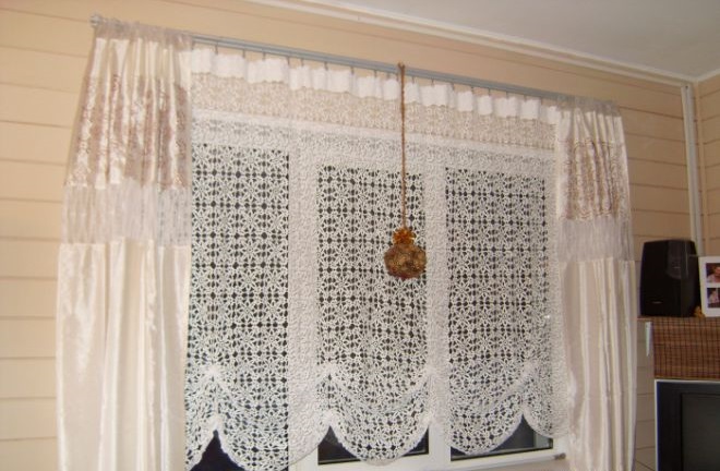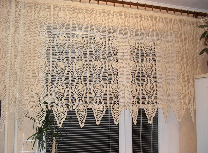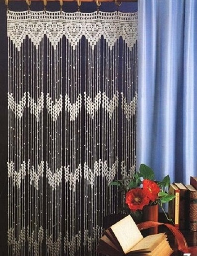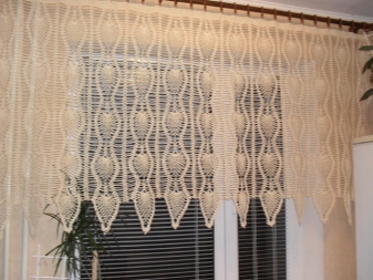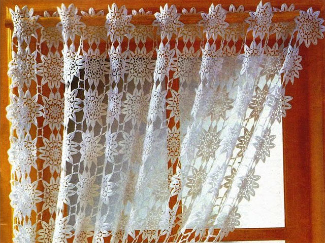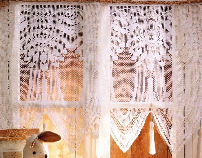 Il est possible de donner ce rideau de la modernité, si combiné avec un autre type de tricot, en utilisant des carrés vides et des motifs aériens.