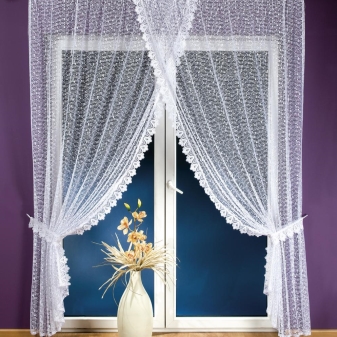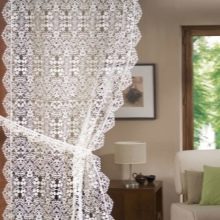Lors du choix des rideaux, en bonneterie, il convient de garder à l’esprit que le tissu est tendu de manière à ce que les rideaux reliés à toute la hauteur de la fenêtre puissent être très longs et reposer au sol. Dans le même temps, la coupe des rideaux tricotés sans risque de dissolution de la moitié du produit échouera. Si vous envisagez d'acheter du tulle tricoté et de ne pas le faire vous-même, il est préférable de trouver une femme à l'aiguille qui s'occupe de la décoration des fenêtres. Il calcule avec précision la longueur et la largeur des rideaux finis en tenant compte de la taille de l'ouverture de la fenêtre, des fils sélectionnés, du motif et de la méthode de tricotage.