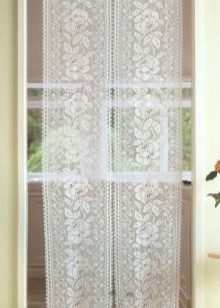 La deuxième caractéristique est la haute densité: la longueur du rideau de la fenêtre. Souvent, vous pouvez trouver un rideau qui ne ferme que la moitié de la fenêtre (haut ou bas, selon la conception). Cette option est assez difficile à entrer dans le salon, elle convient mieux à une cuisine ou à une terrasse. Le long linge tricoté est un salut pour les pièces du sud, elles diffusent parfaitement la lumière et ne permettent pas à la pièce de devenir très chaude.