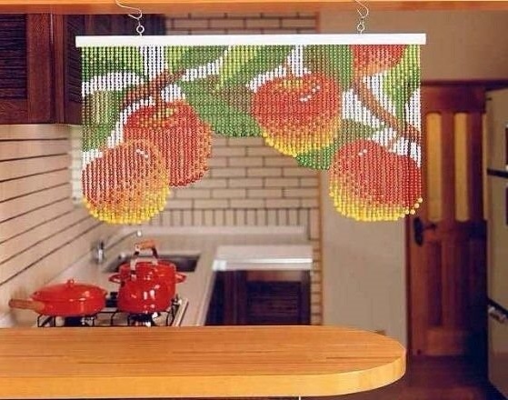 Le rideau-kisee, qui est un fil tricoté suspendu verticalement sur une fenêtre ou une porte, est maintenant très populaire. Pour tisser la toile et lui donner un accent ethnique, on utilise de grosses perles de bois. Le choix du plastique n’est pas recommandé, car il produit un son suffisamment fort en cas de collision. L'exception est Kise avec des perles en plastique nouées autour.