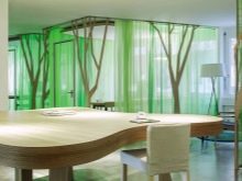 - Kisia - Rideau inhabituel composé d'un ensemble de fils entrelacés. Permet à l'air de circuler librement dans la pièce et, en raison de sa couleur vert foncé, atténue la lumière.